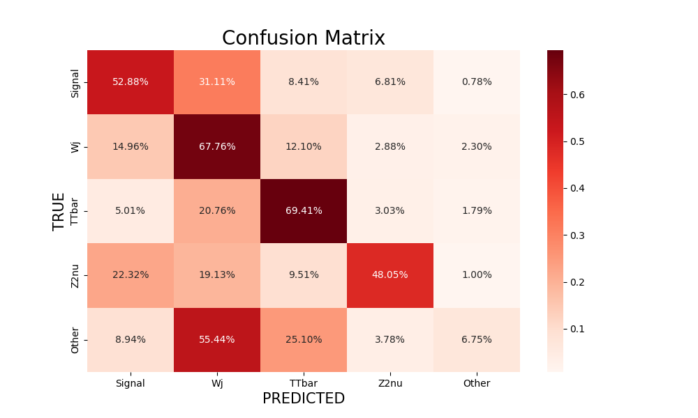 where \(w_i\) is the event weight, reflecting the number of events in the sample, cross section, etc; it takes into account the (signal and background) samples, both in their shape (through bins of a distribution) and normalization. Therefore, to have a numerically balanced problem to solve, the weights should be made to be comparable: